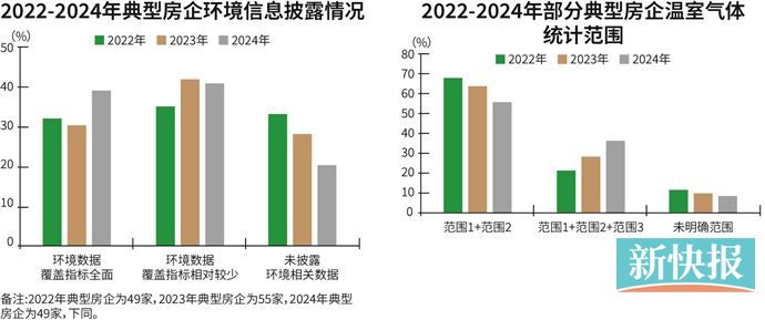 据中国房地产业协会指导,易居研究院与上海克而瑞联合发布的《2025房地产上市公司ESG测评研究报告》(下称《报告》)显示,49家典型房企中,19家房企环境数据覆盖指标全面,包含了温室气体排放、废弃物排放、水资源消耗、绿色建筑四个方面相关内容,占比为39%。《报告》指出,从完整度和丰富度来看,披露环境信息数据的房企已基本形成信息披露意识。但在披露指标的口径方面,房企间环境数据统计范围仍存在较大差距。